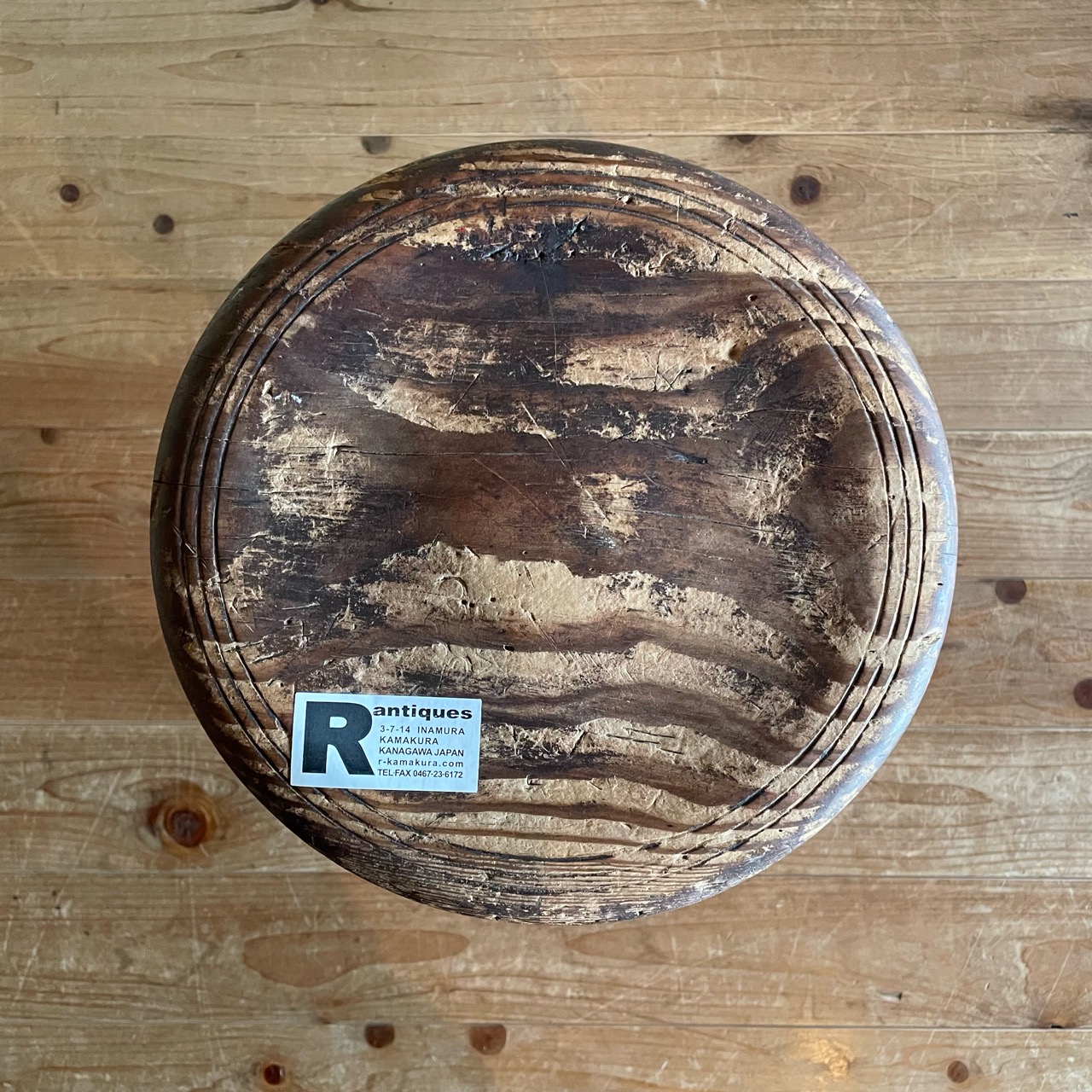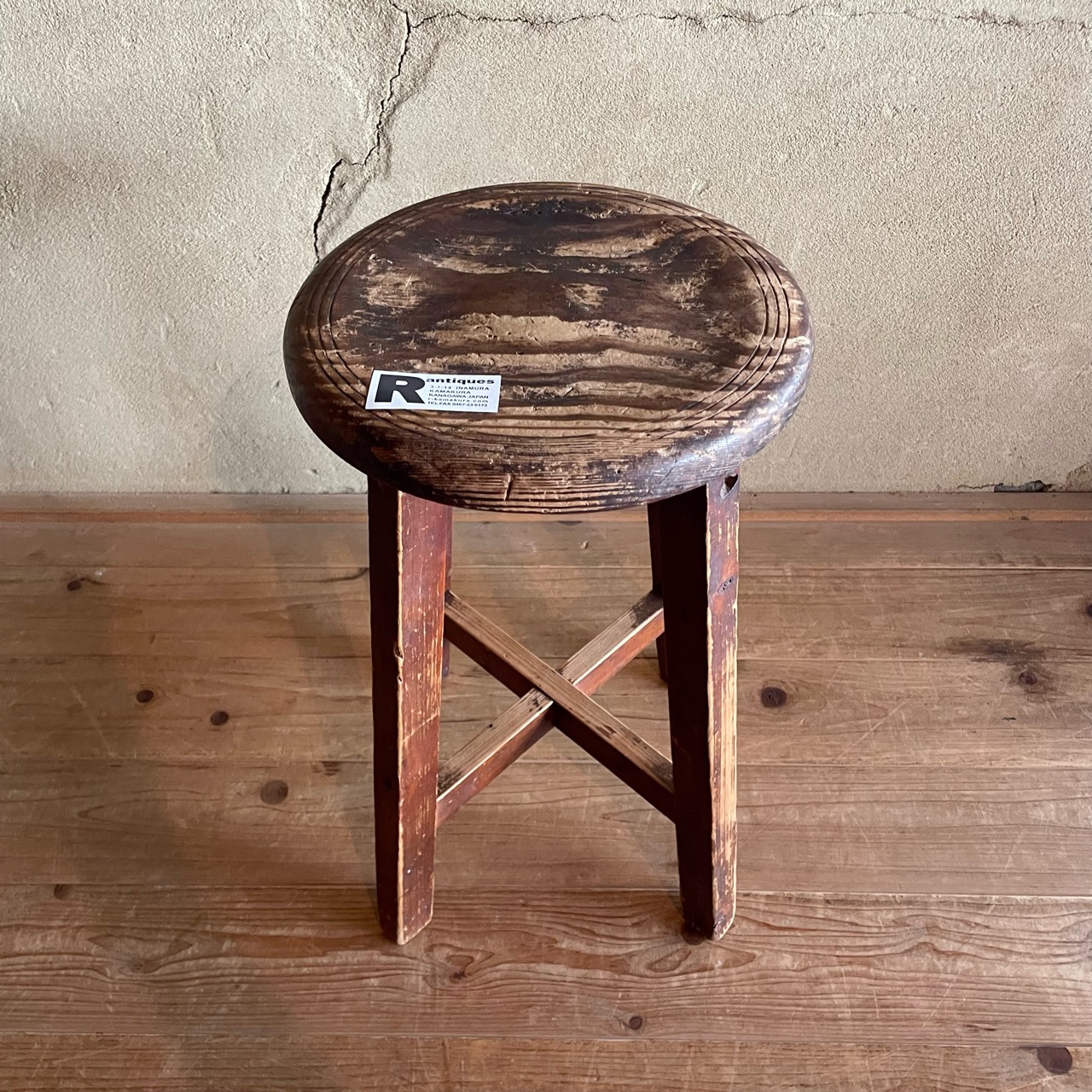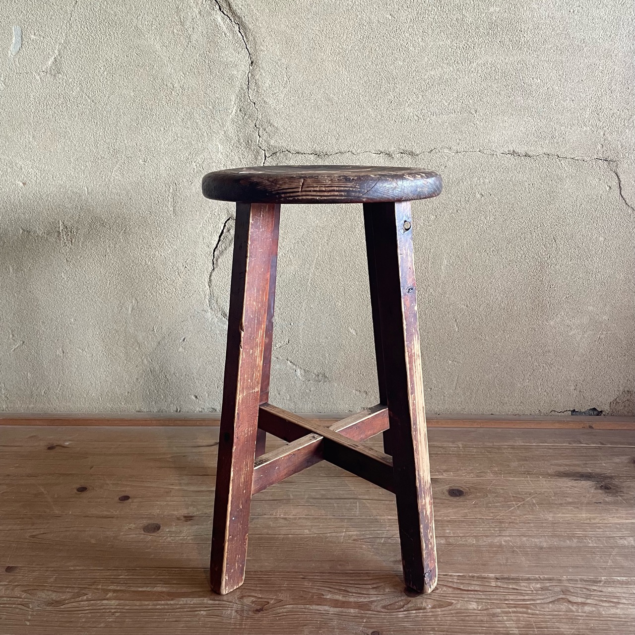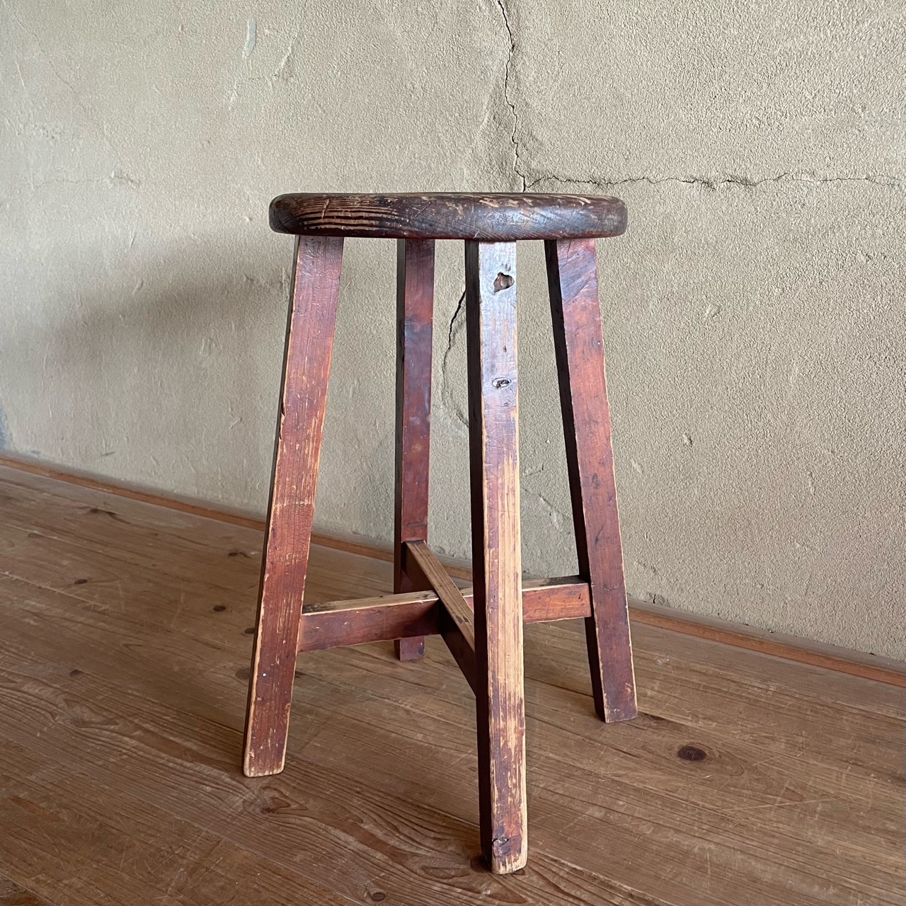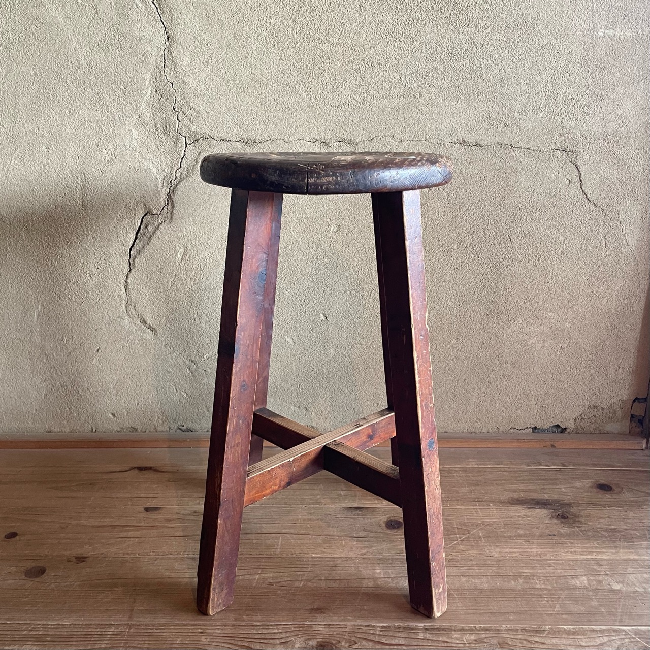 かさっとした風合いに、味わい深い木目が特徴的な木味のいい丸イスです。
