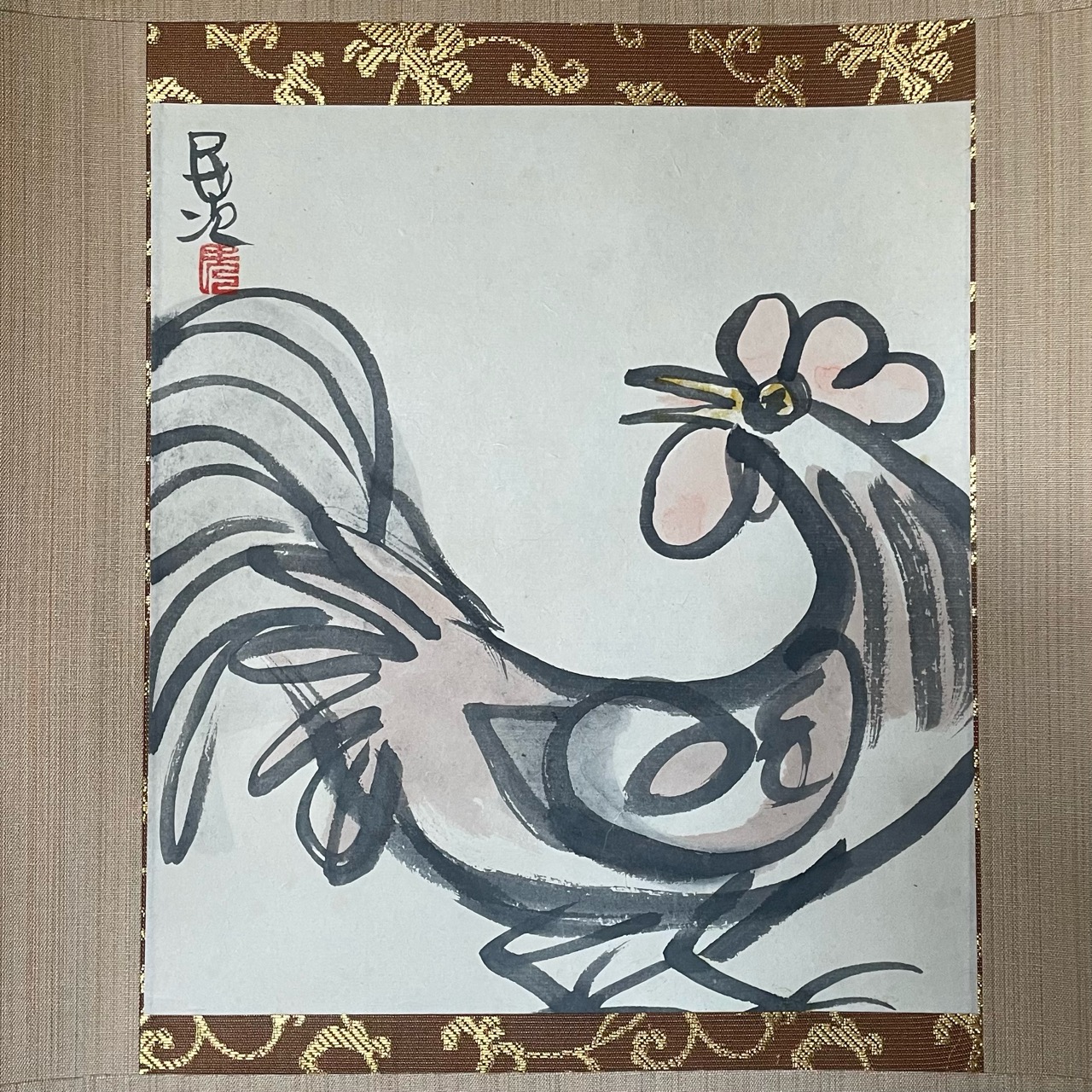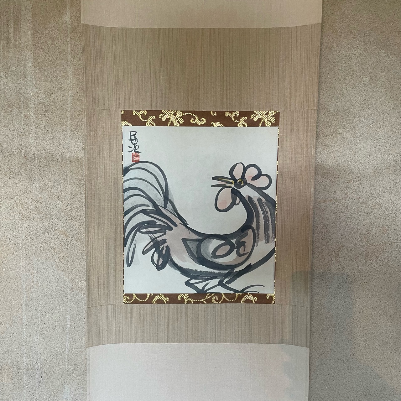 北川民次のにわとりの掛軸です。