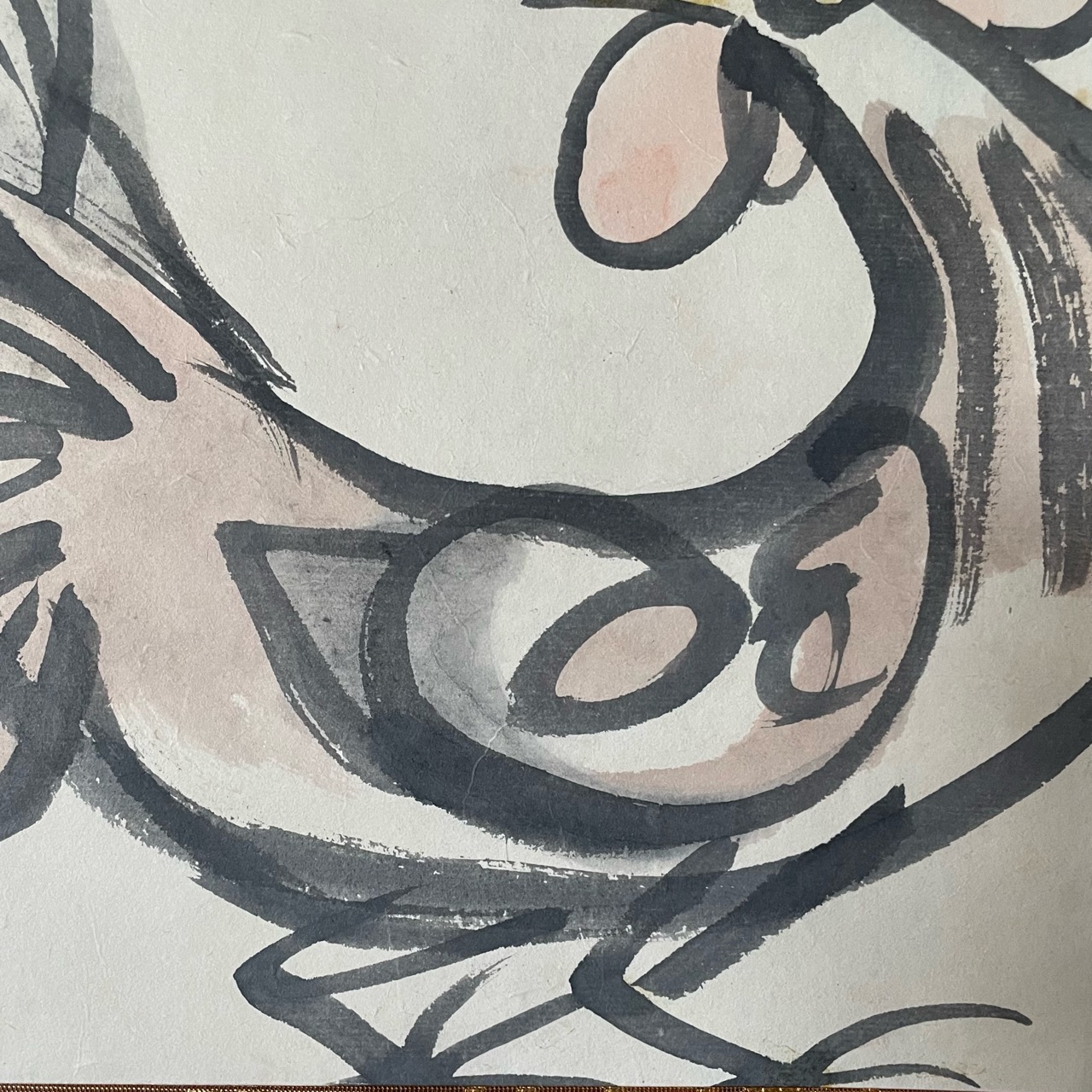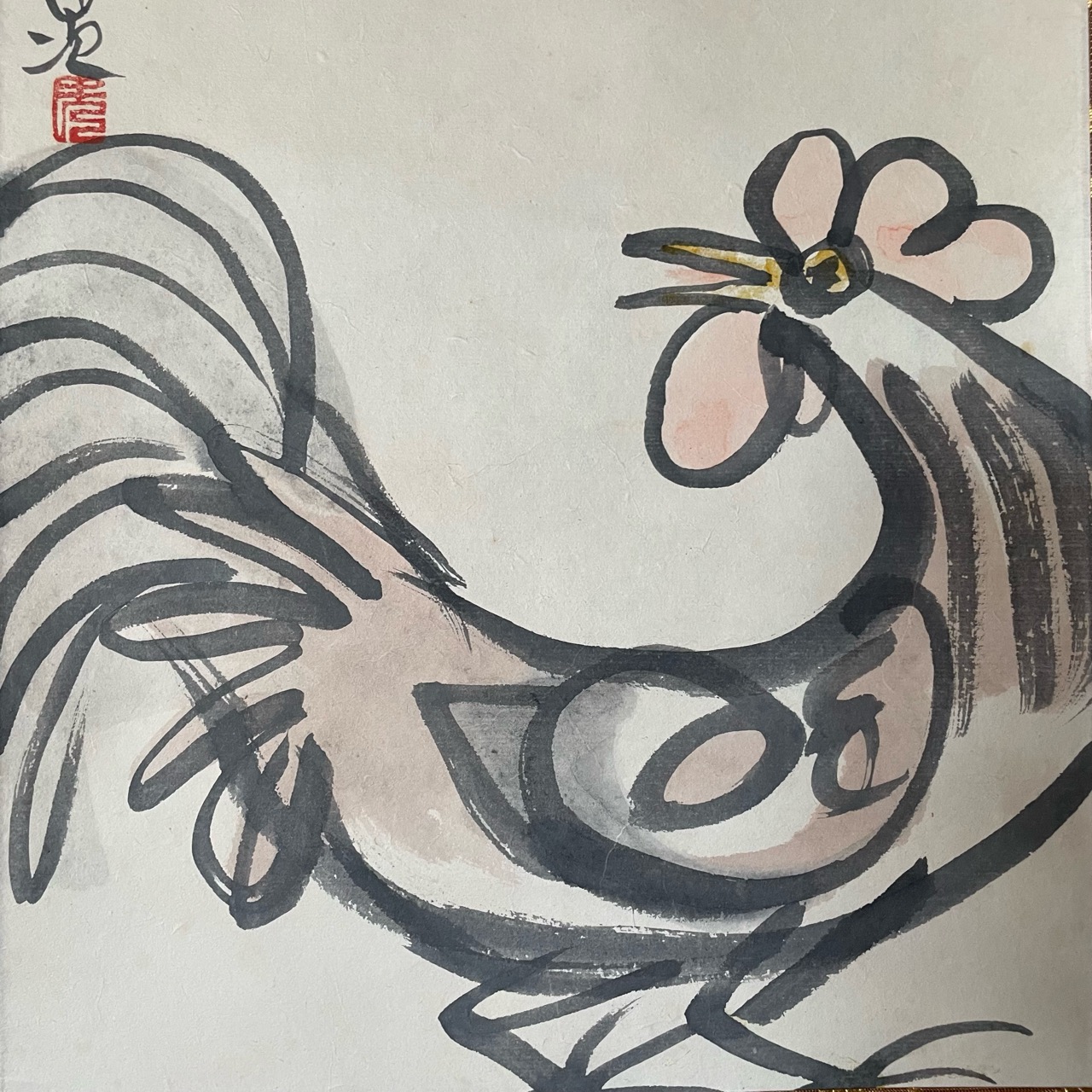 迷いのない筆捌きで紙いっぱいに、にわとりが描かれています。